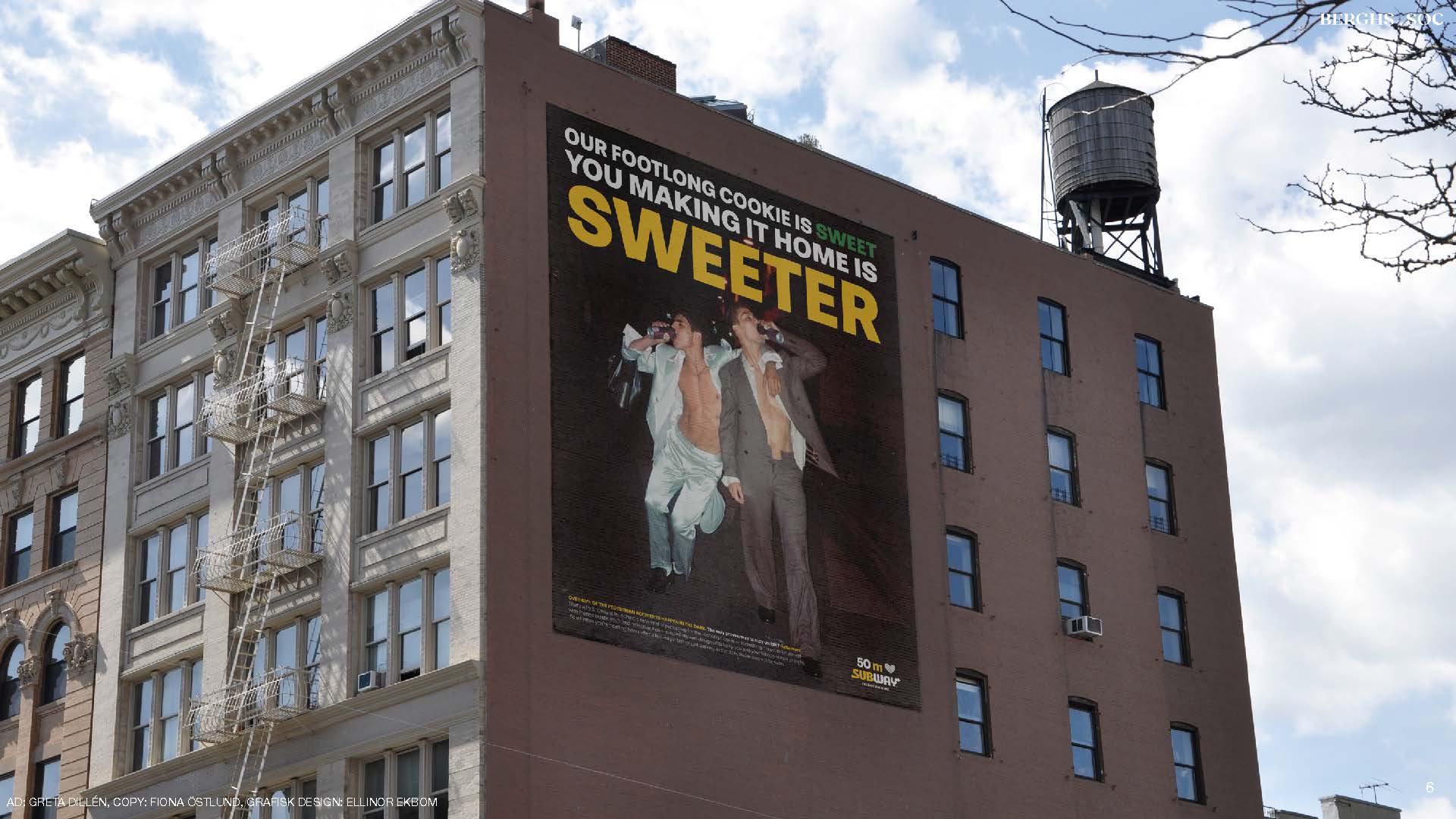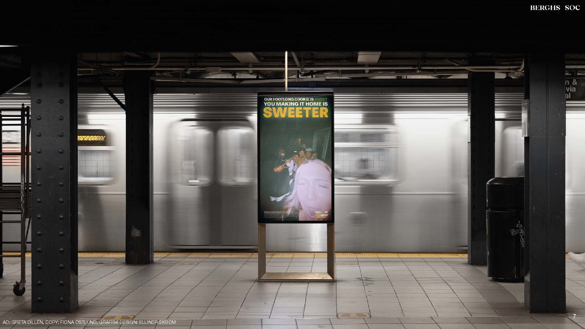 Case: Create a campaign to create “buzz” around Subway’s Footlong Cookie. Concept: Late-night cravings can be risky. Over 65% of pedestrian accidents happen at night, and nearly 40% involve someone grabbing a bite on the way home. Our solution: a heart-shaped reflective sticker on Subway’s Footlong Cookie packaging, keeping you and your friends visible. The concept is reinforced with out-of-home placements along common routes home. (Group Project)